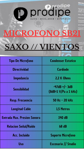 MICROFONO PARA SAXO, CONDENSER, PRODIPE SB21